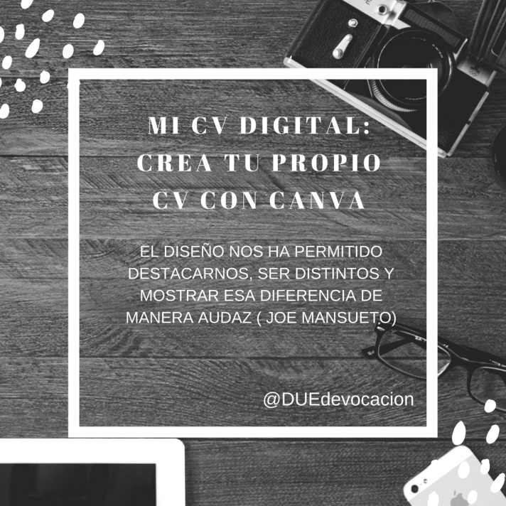 Las herramientas digitales nos permiten diseñar, crear e innovar todo tipo de contenidos para hacerlos más atractivos, visuales y sobre todo, que sean digitales, para poder compartirse en todos los medios sociales y a golpe de click. Hace ya tiempo que el tradicional curriculum vitae ( CV) en formato papel o word está quedando obsoleto, hay que modernizarlo y hacerlo más personalizable, original e innovador para diferenciarte del resto. Existen muchísimas herramientas y guías para crearlos tu mismo y ahora por fin me he decidido a crear mi primer CV con la herramienta a la que me estoy volviendo adicta: Canva.